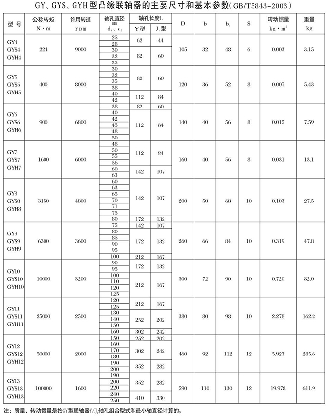 GY、GYS、GYH型凸緣聯(lián)軸器