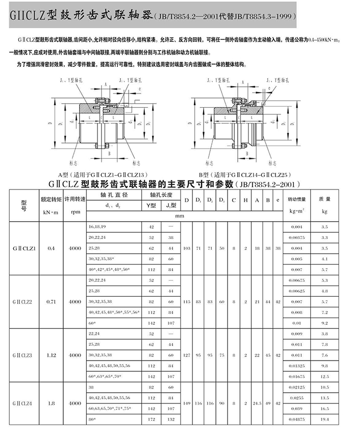 瑞安市寶德隆機械配件有限公司提供GⅡCLZ型鼓形齒式聯軸器具有拆裝方便,快速安裝等特點,廣泛用于連接/固定輪轂孔和零件的軸,例如齒輪,錐齒輪,鏈輪,葉輪,凸輪,皮帶輪和飛輪等軸的聯結固定,咨詢電話:18906872378