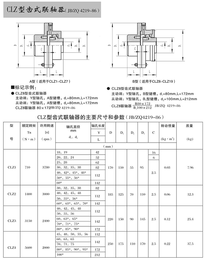 瑞安市寶德隆機械配件有限公司提供CLZ型齒式聯軸器具有拆裝方便,快速安裝等特點,廣泛用于連接/固定輪轂孔和零件的軸,例如齒輪,錐齒輪,鏈輪,葉輪,凸輪,皮帶輪和飛輪等軸的聯結固定,咨詢電話:18906872378